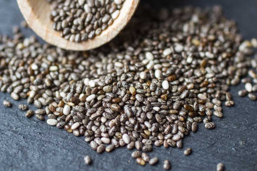 Семена чиа — популярная пищевая добавка, связующий элемент и хороший источник клетчатки с очень мягким ореховым вкусом. При смешивании с водой они образуют гель, по консистенции похожий на ксантановую камедь.