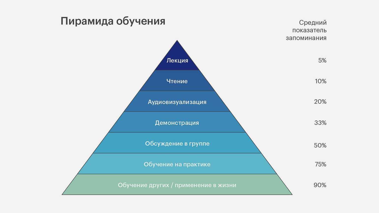 Встречается пирамида обучения и в популярной литературе по саморазвитию. Например, в книге про финансовый успех «Почему мы хотим, чтобы вы были богаты» Роберта Кийосаки и Дональда Трампа есть следующий отрывок:
