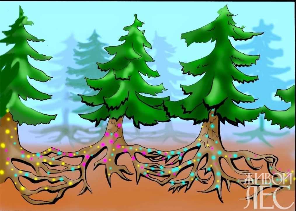Срастание корней дает деревьям возможность обмениваться между собой влагой, минеральными и органическими веществами