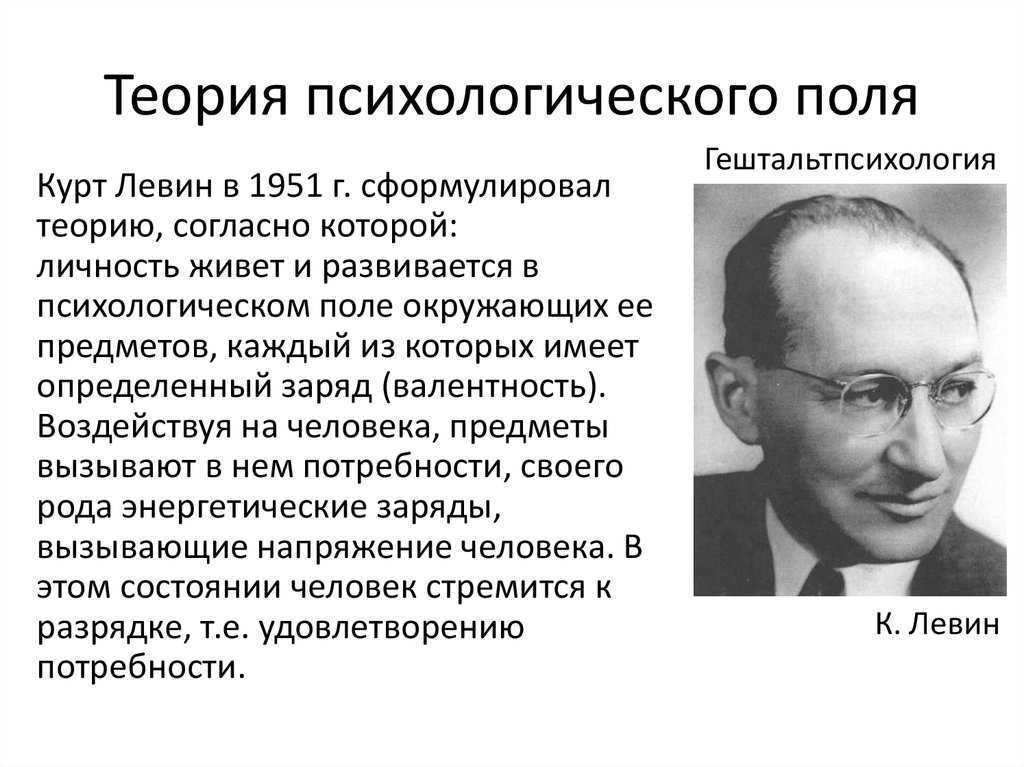 К. Левин писал, что человек живёт и развивается в «психологическом поле» окружающих его предметов. Каждый предмет имеет для человека свою валентность — своего рода энергетический заряд, вызывающий у человека специфическое напряжение, требующее разрядки.