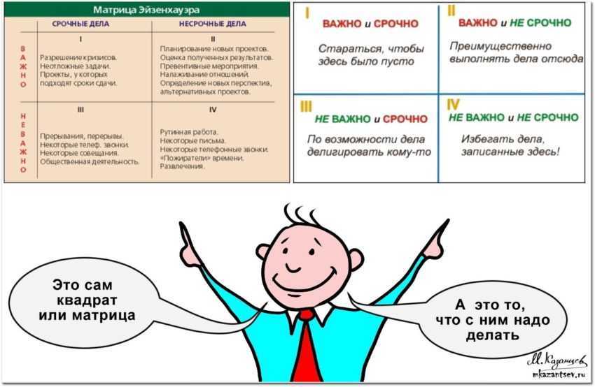 Вам нужно уметь определять, какие задачи являются срочными, важными или трудоемкими, и выделять достаточно времени для их выполнения.